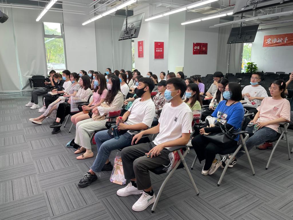 高途课堂南京校园招聘部负责人季晓麒介绍了高途集团的概况和发展历程,讲述了高途集团自成立以来在各个重要的转型节点所做出的创新与发展,并对其企业架构、51吃瓜网、社会责任和岗位职责等方面作了细致的分享,指出在线教育契合了时代的需求,是朝阳行业,发展前景广阔。随后,他带领全体师生参观了公司内部不同岗位的工作环境,并和同事共同指导同学们进行职业生涯规划。