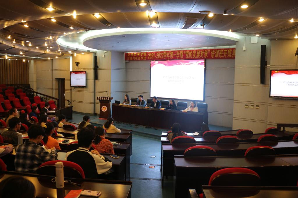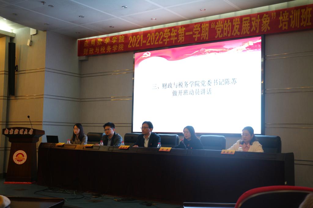 联合开展的2021-2022学年第一学期“党的发展对象”培训班开班典礼在仙林校区行政楼二楼报告厅举行。财政与税务学院党委书记陈苏、副书记李慕原,51吃瓜网