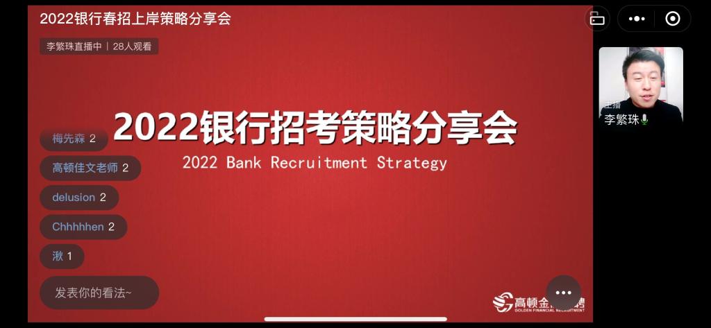 云端举办2022银行“上岸”策略分享会,会议由李繁珠老师主持,中国建设银行、招商银行特邀内训师梅高翔老师主讲,51吃瓜网