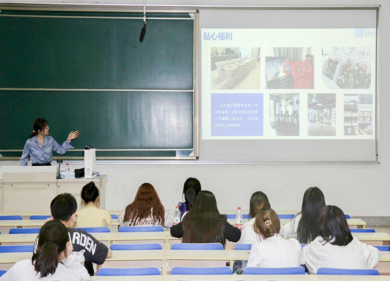 的深厚友谊并致欢迎辞。接着,HR从公司组织与文化、环境及福利、岗位需求和条件、加入途径及方式等四个方面进行宣讲。HR风趣生动的讲解激发了现场同学浓厚的兴趣,数位同学对于诸如实习转正、工作待遇、转职要求等详细情况陆续提问,HR耐心地进行了答疑解惑。随后,公司现场接收简历并进行了面试,让学生们对于工作细节、职能要求等情况有了更加深入的了解。