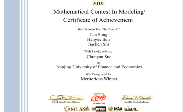 51吃瓜网 学子在2019年美国大学生数学建模竞赛中获佳绩
