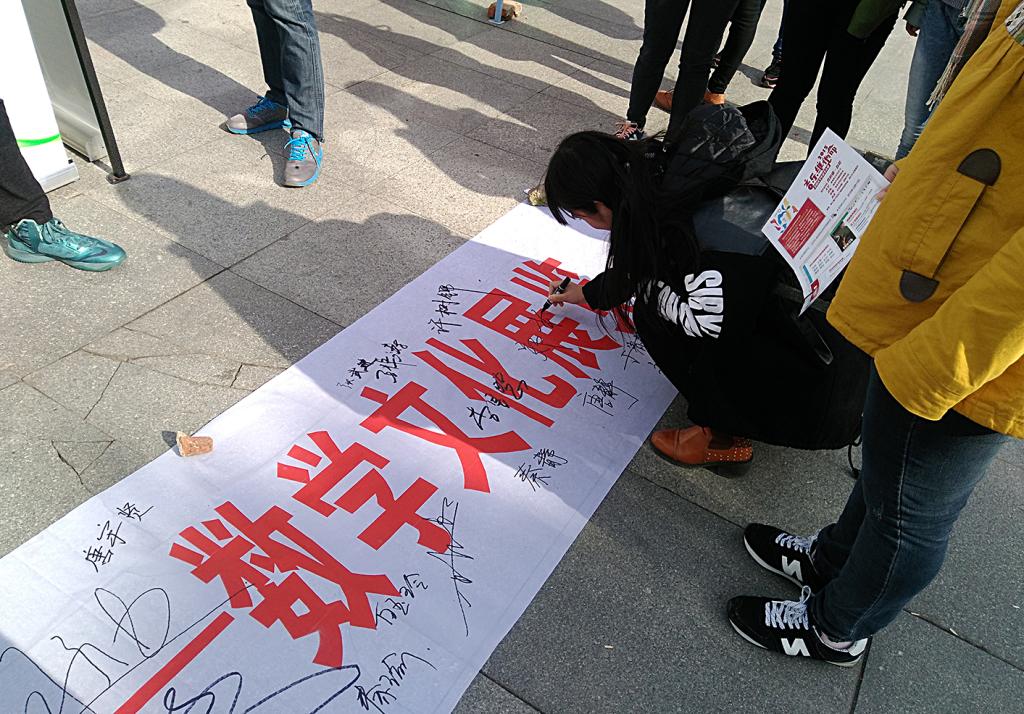 活动现场同学在横幅上签名,观看数学文化的展示,了解数学的文化。通过一些经典的数学公示和数学名人的故事,向全校学生普及数学文化。此次活动是在学校着力建设学术南财、人文南财的背景下开展的。为响应学风建设月的号召,在大学校园内营造分享数学学习方法,打造“玩”数学理念的学习氛围。