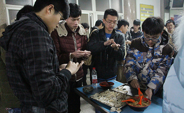 相关负责人、老师和2015级全体新生一起包饺子,庆冬至。