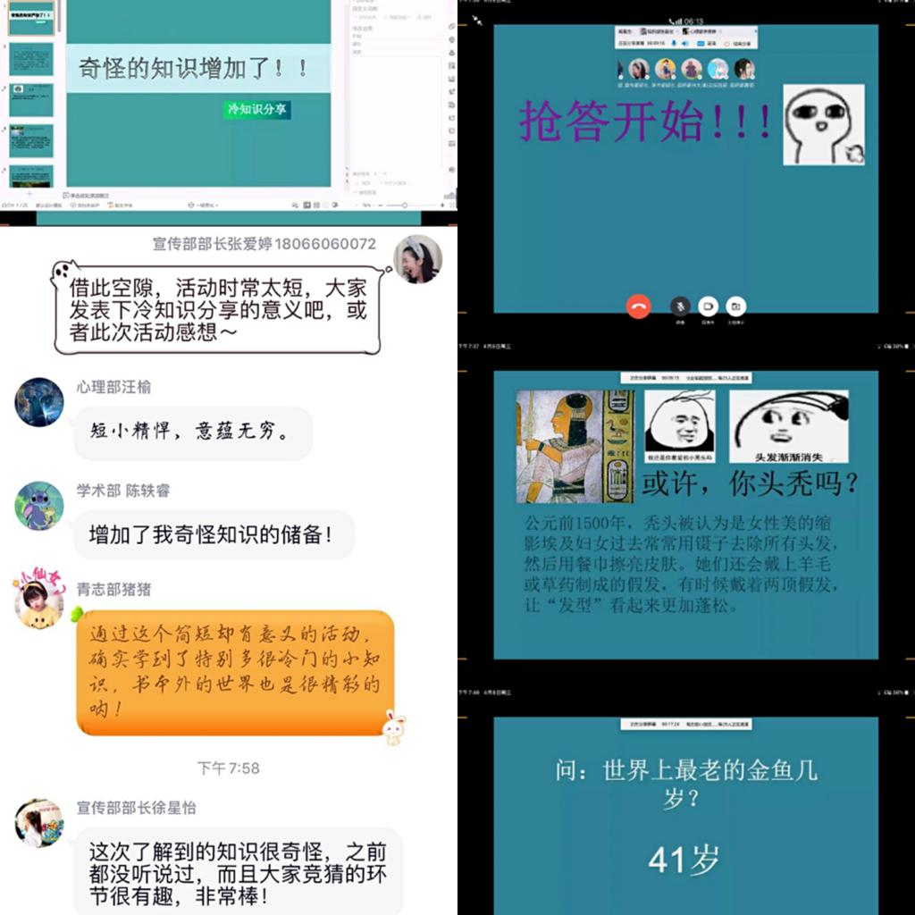 于线上开展了“奇怪的知识增加了”冷知识分享会。分团委全体成员参加了本次活动,活动由分团委宣传部龚诗钦主持。
