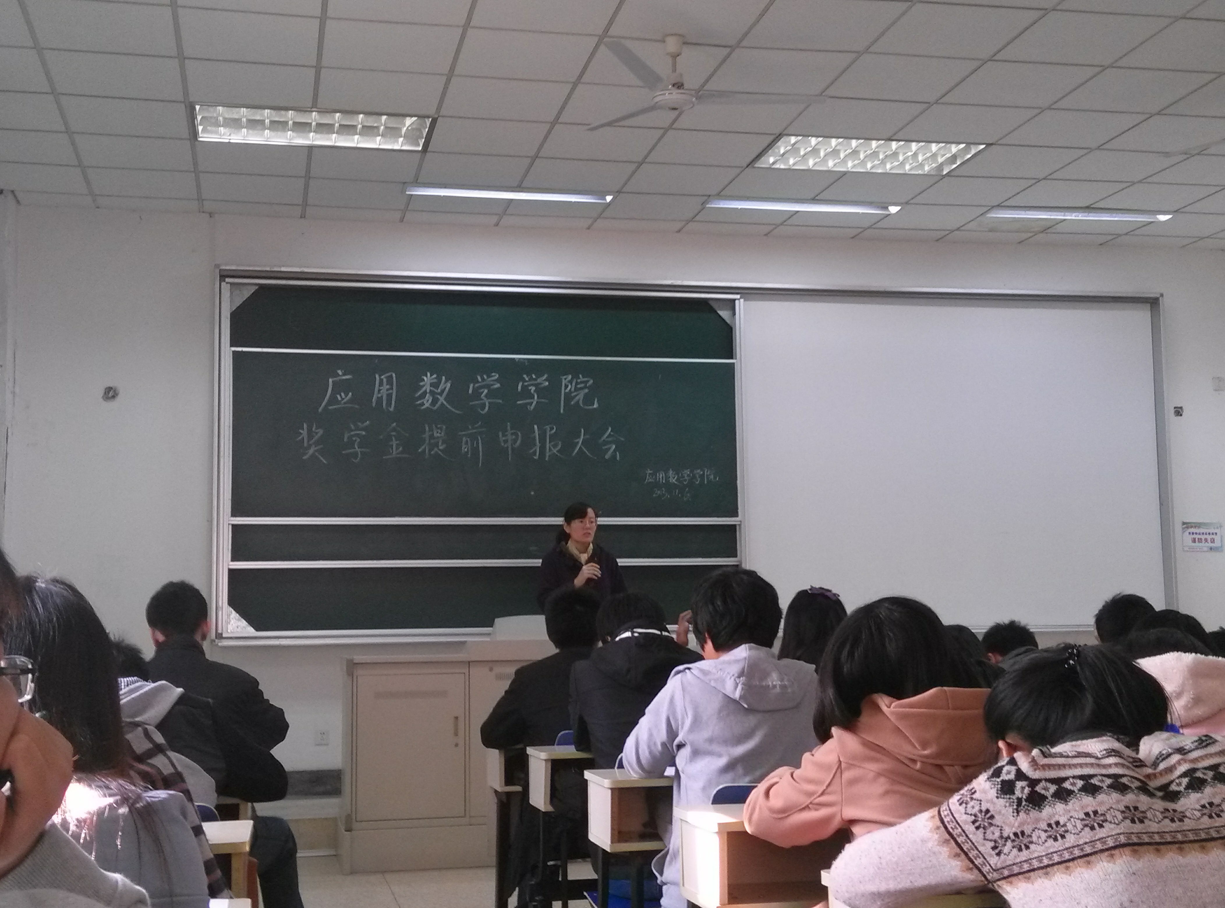 首先,由团总支副书记孟幻同学给现场学生发放奖学金提前申请的表格。张文文老师介绍了实行奖学金提前申请的目的和具体做法。实行奖学金提前申请的目的是激发学生学习的热情、营造良好的学风、减少学生因无学习目标而造成的迷茫,使奖学金变成我能、我可以、我要争取得到的目标。奖学金提前申请的具体做法是:在每学期的学期初,学生向年级提交奖学金预申请表,申请表中填写本学期各门课程计划取得的分数、本学期计划获得的名次、奖学金种类以及为此目标所做的规划。在学期末,将填报申请的同学的成绩进行自然排序评出奖学金获得者。同时,根据学生在学期初申请的奖学金的等级与学期末实际所获奖学金的匹配度,增设目标达成奖。目标与结果越一致,奖励等级越高。当实际获得奖项高于申报奖时,颁发“进步奖”;当实际获得奖项等于申报奖时,颁发“成功奖”;当实际获得奖项低于申报奖时,颁发“鼓励奖”,将奖学金的鼓励作用发挥到最大。接着,介绍该表格填写的要求和注意事项。申请表在会后填写完成上交学院保存。