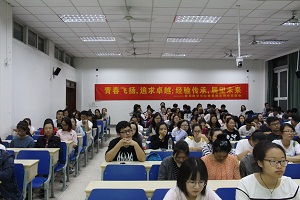本次活动的主题是:青春飞扬,追求卓越;经验传承,展望未来。学院通过自荐、选拔出一批优秀的青年学子,到新生班级去分享自己的青春励志故事。杨曾同学学分绩点在年级名列前茅,他分享了自己独特的学习经验,亲切的话语,温馨的叮嘱,向新生们提出了大学学习的重要。丁宁同学以亲身经历为新生们打开数学建模的世界大门,鼓励新生们挑战自我,积极参加各种数模比赛。郑静同学就出国留学方面,给大家介绍了非常宝贵的经验,让新生们受益匪浅。陈楠同学讲述了自己暑假赴埃及进行叙利亚维护和平志愿活动的经历,鼓励同学们要积极参与社会实践活动,全方位地锻炼自我,在磨练中成长。