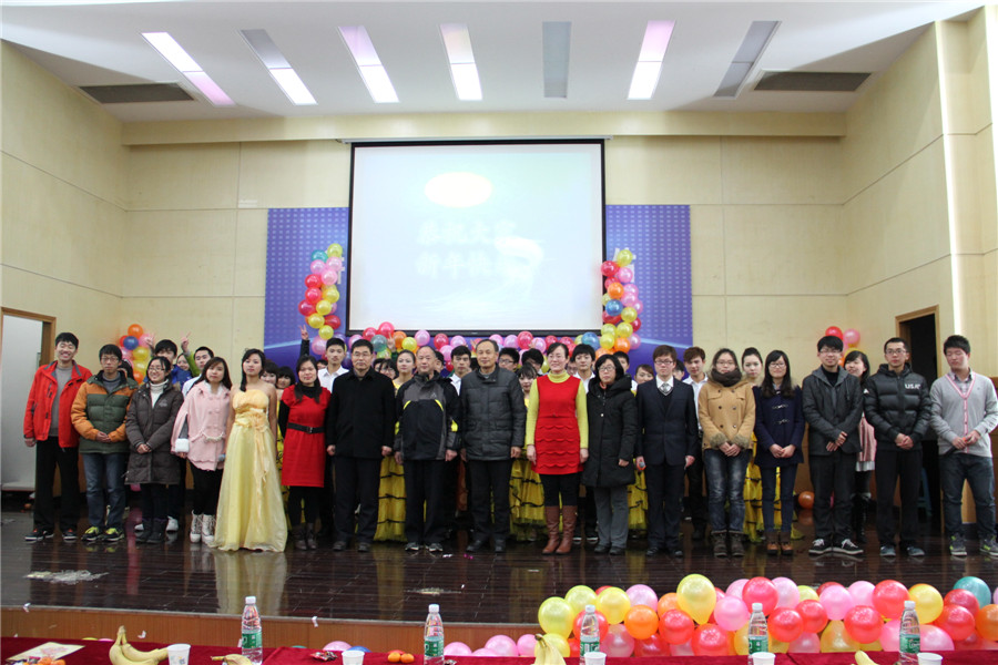 的前景,预祝同学新年快乐并宣布晚会正式开始。他的讲话获得了同学们的热烈掌声。
