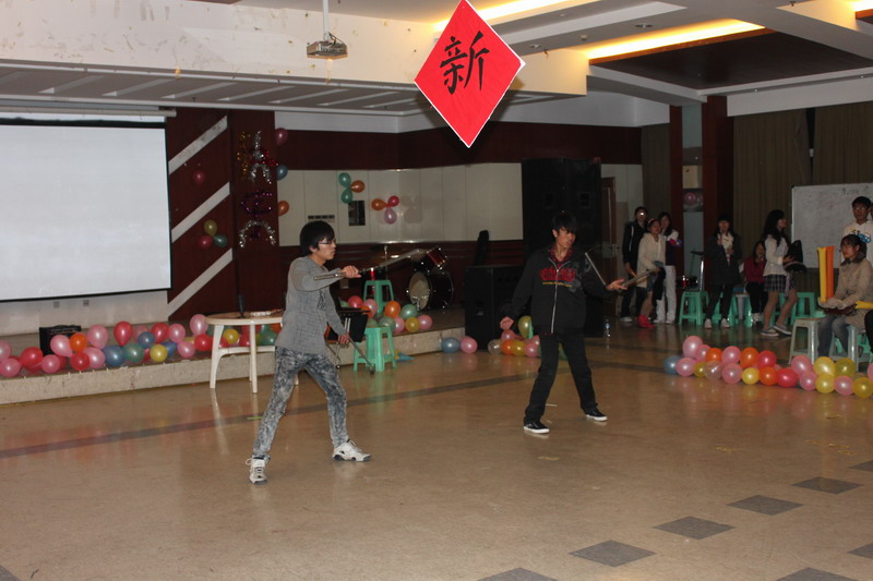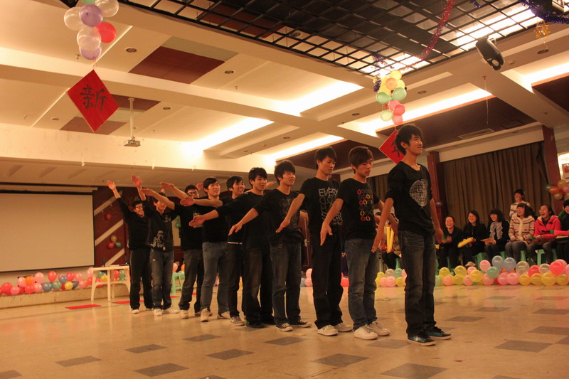 晚会伊始,“金属公社”乐队激昂的《离开地球表面》就带动起全场的气氛,随后可爱的集体舞《气球》、深情的歌曲独唱《爱的就是你》、搞怪的相声《超幸福鞋垫》,改编的话剧《梁祝外传》,互动的猜词游戏,让大家在愉快轻松地氛围中结束了第一乐章“载歌载舞贺新春欢聚一堂迎新年”。