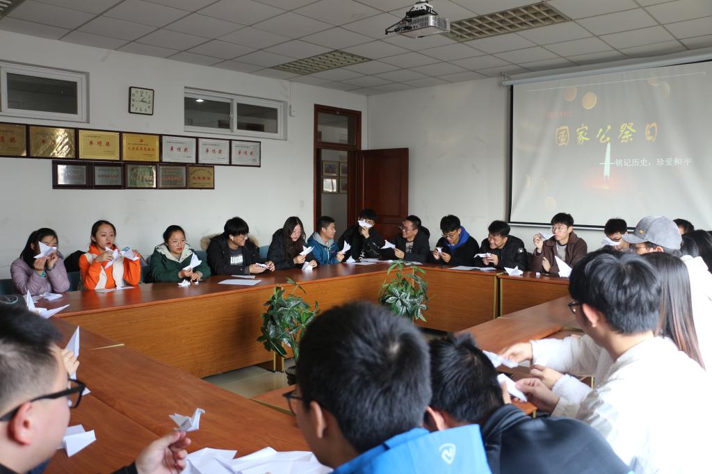 在德业楼534会议室开展了以“铭记历史,珍爱和平”为主题的纪念南京大屠杀死难者国家公祭日系列活动。数院学子积极参与其中,观影了解历史,默哀悼念亡魂,动手制作和平鸽祈福,寄托哀思,倡导和平。
