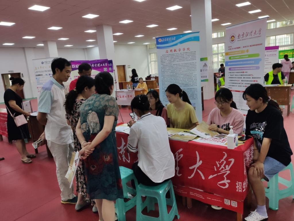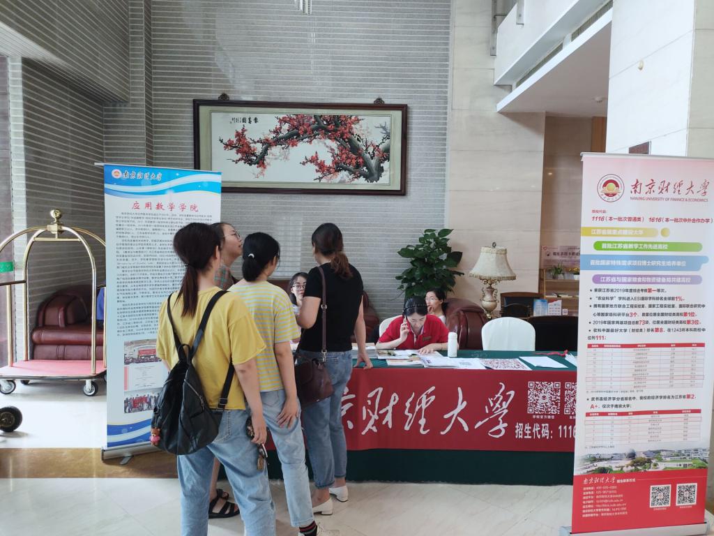 7月26日下午14点,团队成员赶到南通大学附属中学进行招生宣传。考生和家长们都十分热情地询问关于南财的报考情况以及热门专业,团队成员也给出了十分耐心细致的解答。