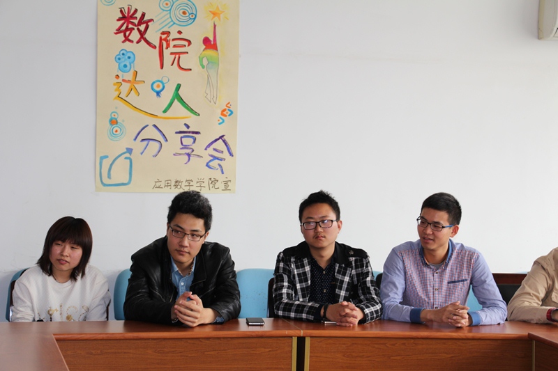 分团委书记张文文、2011级学生代表、其他各年级学生参加了此次分享会。分享会由张文文主持。 此次分享会是考研专场,由2011级考研取得好成绩的王晔琴、王海宇、林坤泉、闵济康给其他年级学生进行经验分享。他们被录取的学校分别是同济大学、东北财经大学、中国人民大学、南京大学。4位同学依次发言,介绍考研的成功经验,同时也对自己在考研过程中的一些教训与大家分享。 2011级的学生代表发言后,其他各年级的学生进行提问。学生对考研的学校、专业选择问题,复习时间安排问题,英语、政治、数学、专业课的学习问题提了很多问题,2011级的学生代表结合自身的考研经历给他们进行解答。此次分享会对于帮助学生树立考研目标、指导考研学习有很大的启发和帮助。据悉,为切实提高考研出国升学率,提高学生就业质量,51吃瓜网