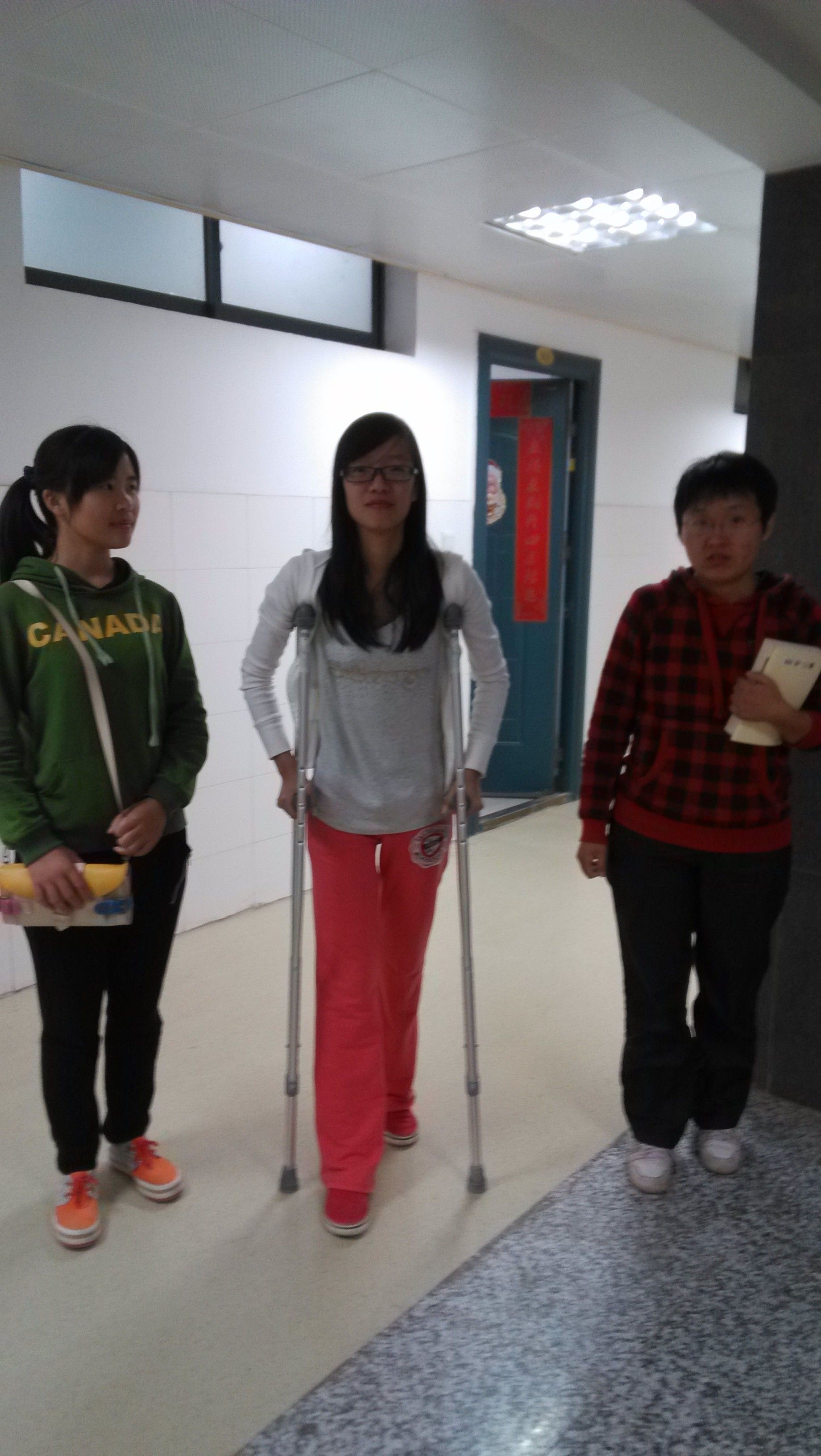 “其实我之前在家也发生过这个情况,除了刚开始有点慌,在老师和同学们的关怀下很快就镇定下来。从学校到医院路上感觉时间好长,总也不到似的,我的腿伤需要保持固定不动的状态,同行的同学们不光扶着我,按着腿,还不停和我聊天,分散我的注意力。路好长,但我有幸有这么多好伙伴一路相陪。”