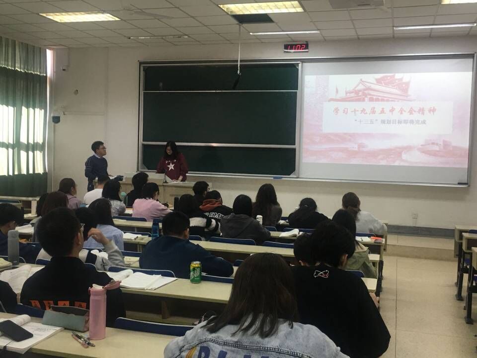 为响应上级号召,使班级同学深入了解党的十九届五中全会精神,11月18日上午,数学1801团支部在仙林校区德业楼117室开展了以“学习十九届五中全会精神”为主题的团课。团课由组织委员周雨涵主讲,数学1801团支部全体成员参与。