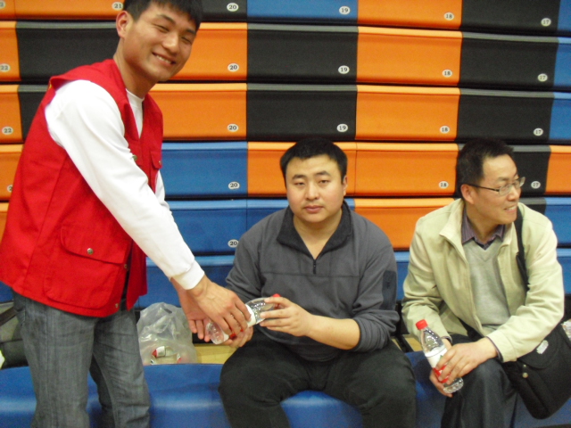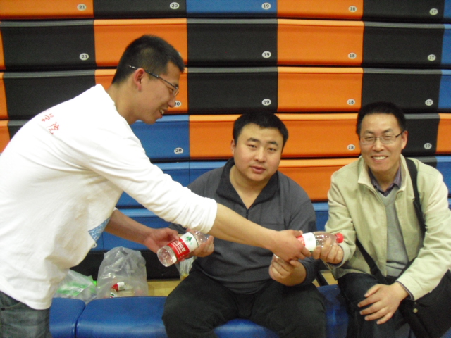 比赛时,我们站在场外为老师们加油助威。打得精彩时,我们鼓掌喝彩;球飞出来时,我们飞快的去捡球;中场休息时,我们及时为老师送水、拿纸巾;比赛结束时,我们递上水果面包为他们补充能量;休息时,我们还可以和老师们聊聊天。期间,笑声不断,丝毫没有师生间的隔阂。负责拍照的同学实行多角度拍摄,尽可能的抓拍老师们比赛时的精彩镜头,无论是老师们的动作表情,还是比赛整体的氛围,就这样,通过一张张照片留下纪念。整个志愿服务过程中,我们相互配合,相互合作,力争达到较高的工作效率,尽一切可能的解决老师们的后顾之忧。