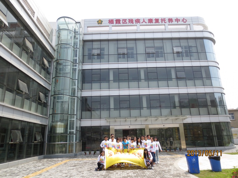 的志愿者们,来到栖霞区残疾人康复托养中心帮助那些有着身体残缺的孩子。聋哑儿童学校坐落在偏远农村的不起眼的角落里。与我想象中有较大的出入。从外面看,它和旁边的居民房没什么差别,极为普通。走进里面,崭新,简洁,干净。首先映入眼帘的一些儿童的娱乐设备。从踏进门口那一刻起,我压根儿就没有感觉到他们和其他的小孩子有什么区别,他们都很热情,都很喜欢和哥哥姐姐们玩耍,灿烂的笑容洋溢在他们天真可爱的脸上。