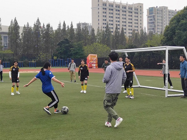 11月14日下午南财首届女足比赛在西苑操场正式开始,本次比赛采用五人制赛制,首先由体育部主任致辞开幕式,希望通过此次活动促进体育在南财的发展,丰富同学们的第二课堂活动,增强体质,并表达了对裁判运动员的殷切期待,接着由邱伟芬副校长进行开球仪式。