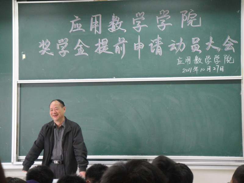 动员大会公分三项议程。首先,陈书记介绍了实行奖学金提前申请制度的来源、意义和具体做法。奖学金提前申请制度是对现有奖学金制度的创新,该项制度的原创是南京理工大学。实行奖学金提前申请主要是为了激励学生更好地发挥学习主动性,引领学院的优良学风。奖学金提前申请的具体做法是:在每学期初,学生向年级提交奖学金预申请表,填写本学期各门课程计划取得的分数、本学期计划获得的排名、奖学金申请的种类、等级以及为此目标所制定的规划;学期末将申报的所有同学成绩自然排序,评选出奖学金获得者。同时,根据学生在学期初申请的奖学金等级与学期末实际所获奖学金的匹配度,增设目标达成奖。目标与结果越一致,奖励等级越高。当实际获得奖项高于申报奖项时,颁发“进步奖”;当实际获得奖项等于申报奖时,颁发“成功奖”;当实际获得奖项低于申报奖项时,颁发“鼓励奖”,将奖学金的鼓励作用发挥到最大。