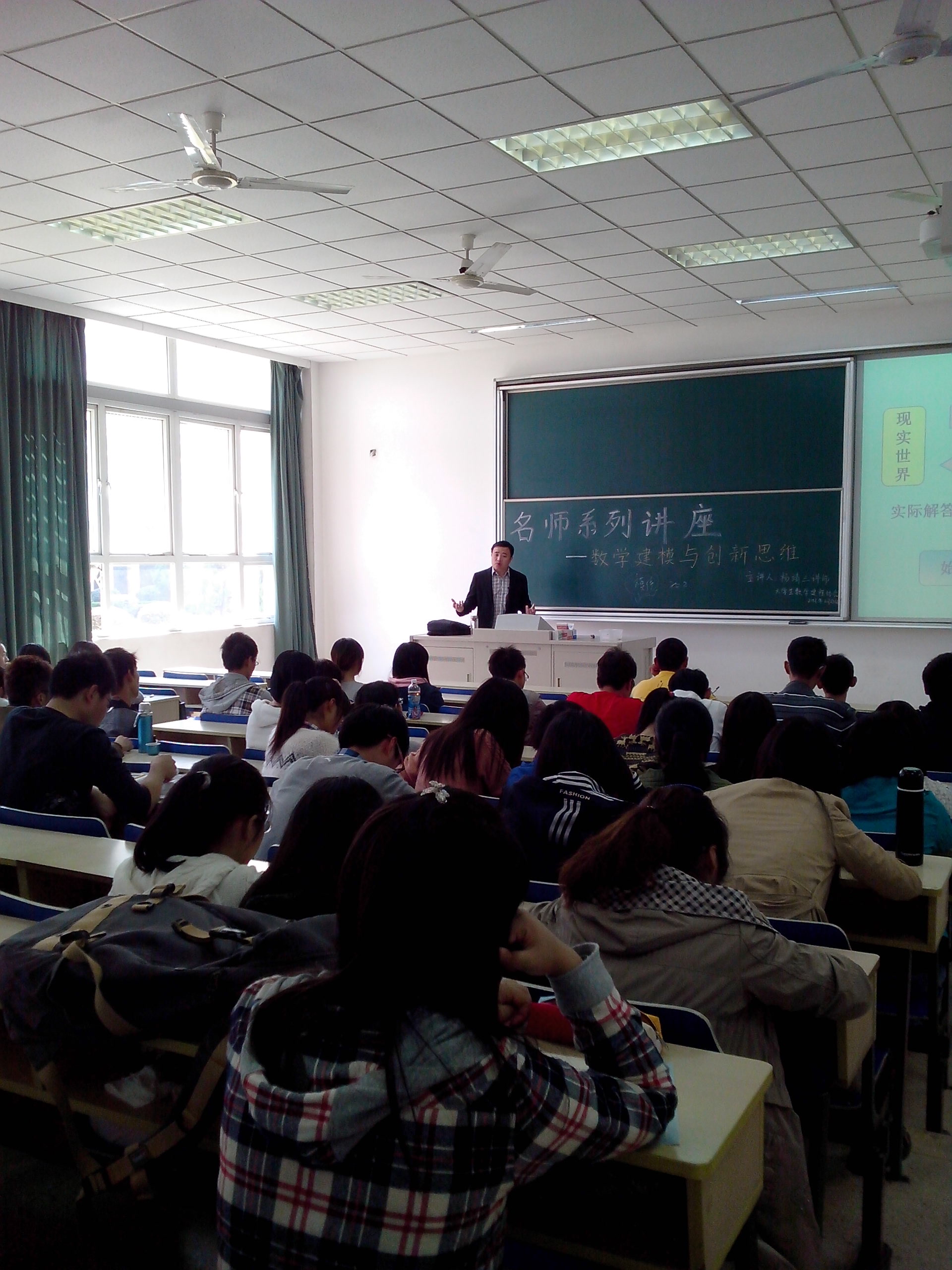 本次讲座强而有力地阐释了数学建模的本质以及创新精神的重要性。杨老师首先就一个数学建模题目的整个解题过程进行了热详细的讲解,由浅入深列举了建模中应用较多的数学模型以及需要用到的数学方法。接着,杨老师对创新思维这个概念进行了极为细致的阐述,他讲到,创新不仅仅体现在大的创新,也有小的创新,有思维的创新,同时也不可忽略论文方面的创新。就创新这个话题,杨老师还与大家一同分享了他最近几年年来走出的思想误区,即一个人若能将文章写好则说明他有很强的逻辑思维,他还打趣道,现在最佩服会写小说的人了。最后,老师以历年的数学建模真题具体讲述每个题目的解题思路,并指出在此基础上需要用到的数据处理软件。讲座过程中,所有同学都全神贯注,现场不时还爆出阵阵掌声。