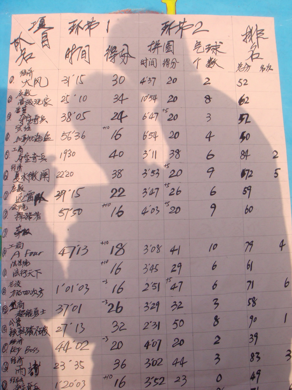在“步步为营”环节中,各参赛队先用给定的拼图拼出两幅图片,依据图片内容在学校范围内依次搜寻“宝”物。在拼图环节中,各队的三到四名参赛队员配合默契,有的队伍刚把拼图展开就向预定地点赶去,还有一个男生在研究了一会儿拼图后大喊一声:“我知道了,图书馆!”接着往图书馆飞奔过去。在拼图比赛共设置了12个查找点,加上酷热的天气,使搜寻难度大大增加。但是参赛的选手们个个毅力坚定,即使气喘吁吁、脚步沉重,仍然不肯放松,时间就是决胜的关键。一个小时后,各参赛队陆续带着各自的战利品返回出发点。