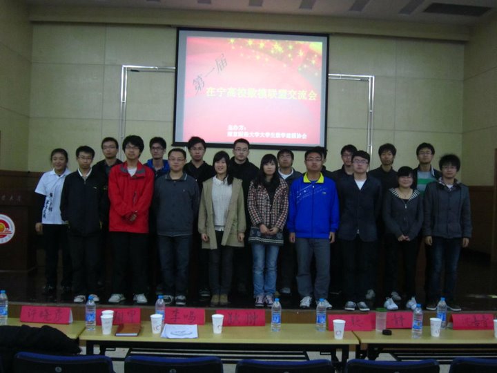 第一届在宁高校数学建模联盟交流会11月27日上午9点在转二报告厅华丽开幕,出席领导和嘉宾有南财优秀数模带队老师陈美霞,南财数学建模教练组组长周慧新老师,社联副主席狄翀和曲翔宇,还有校内的部分社团以及校友通讯社、《青年聚焦》、校团委“百舸”宣传中心的同学。
