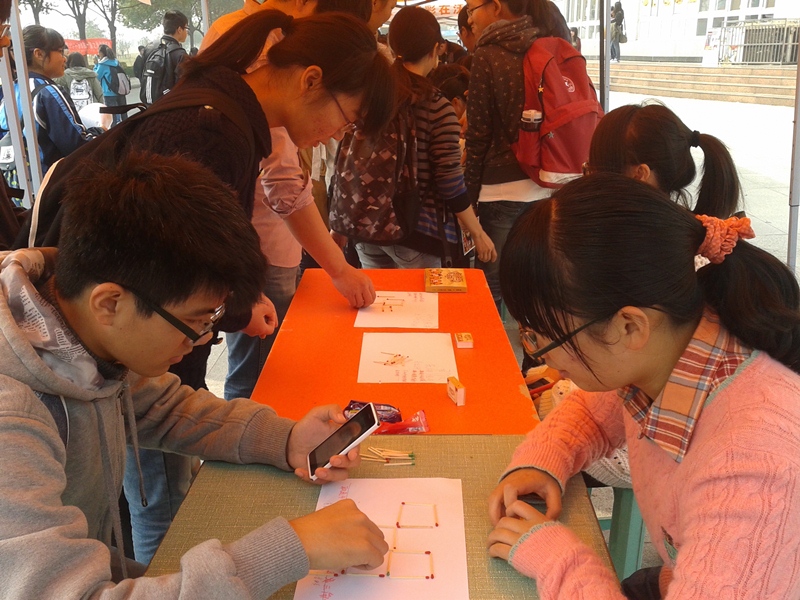 2013年11月8日中午11时,“爱我南财”校庆月系列活动之“数学嘉年华活动”在西苑食堂门口举办,活动现场参与人数众多、气氛活跃。