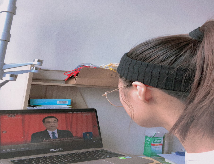 金数1802班黄一珊在家观看两会直播