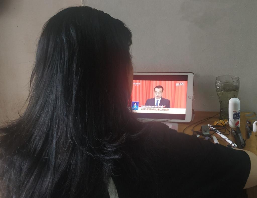 金数1801班张爱婷在家观看两会直播