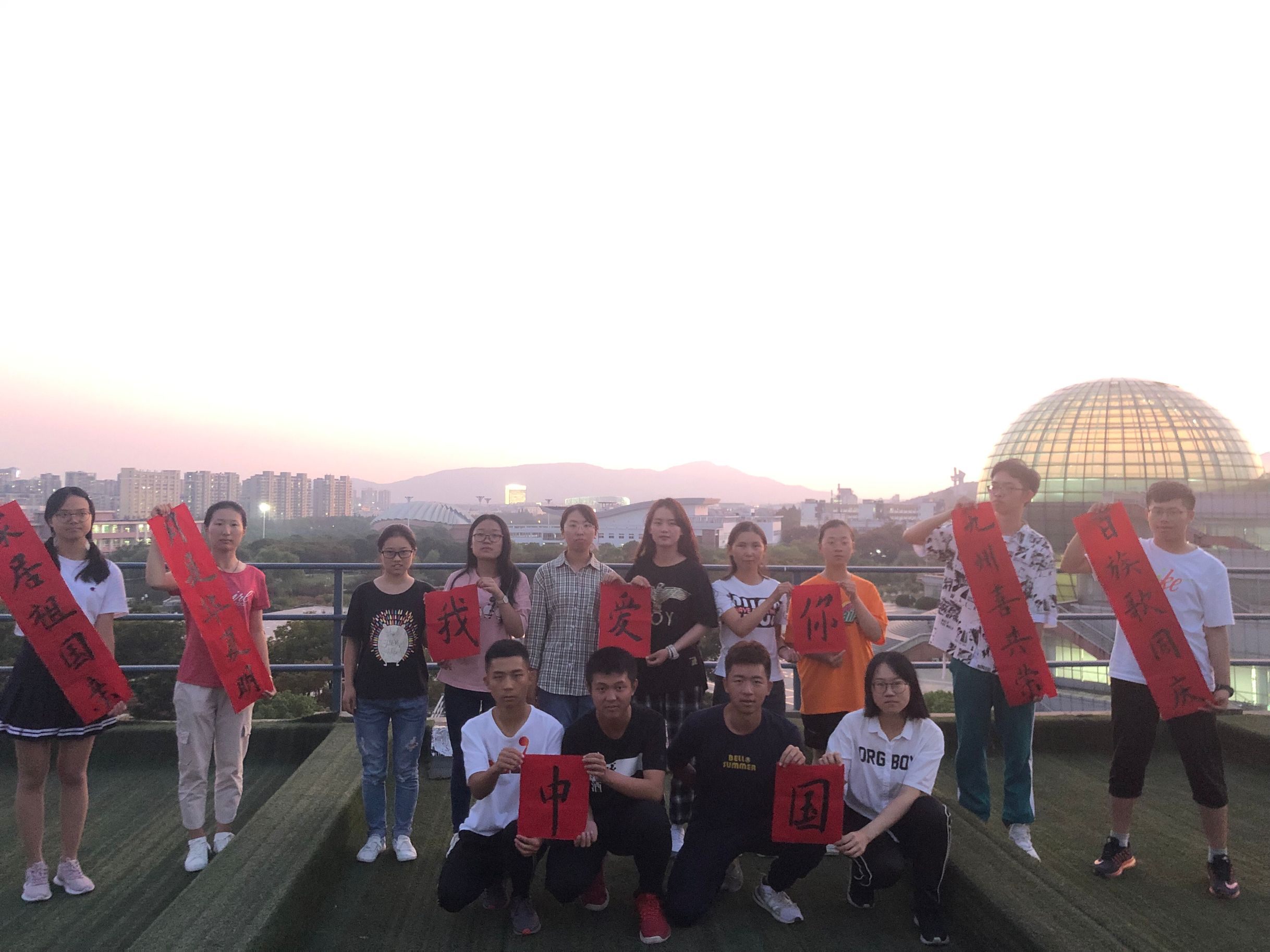 在仙林校区德业楼五楼草坪开展“书画爱国心语,献礼70华诞”主题活动。