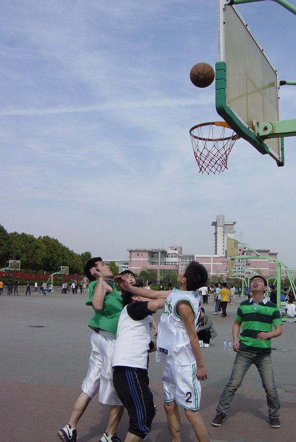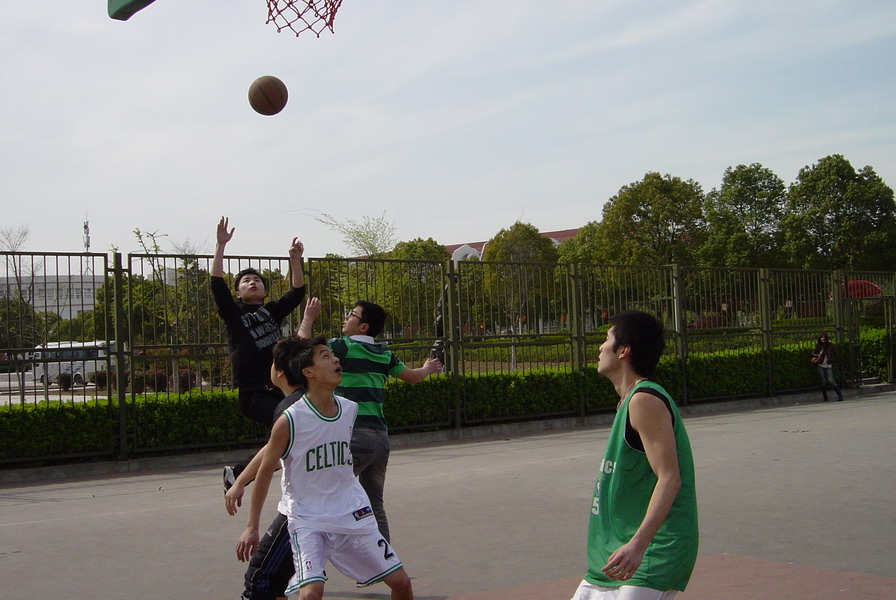 没有过多的啦啦队,没有华丽的球场,比赛却在大家激情四溢的欢呼声中正式开始了。“防守”“抢断”“传球”……大家玩得不亦乐乎。球场正是一个展示我们青春的舞台,大家尽情地上演着自己的篮球天赋。一个漂亮的大风车,一个精准的传球,一次扑朔迷离的晃人,一记完美的远投……不停翻滚的记分牌,不断地记录着一个个令人惊叹的瞬间。除了场上奋斗着的选手,我们也不乏疯狂的球迷。每有一个进球,场下总会传来不绝于耳的欢呼声。有的人甚至特意带了相机记录下每一次进攻与防守。我们在欣赏比赛的同时也千万别忘了在背后默默付出的裁判员,他们口中不停吹响的号子沾到的正是他们辛勤的汗水。有了肯付出的工作人员比赛也就自然而然地在他们的规划下,有条不紊地进行……最后11号站17幢203的大四学长们在众多选手中脱颖而出,夺得桂冠,为他们在大学里最后的生活划上了精彩的一笔。
