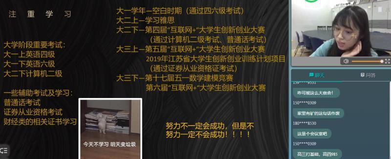 学生学习的相关证书。接着,黄明珠学姐结合自身经验向新生提出了几点宝贵建议,希望同学们时刻督促自己,珍惜时间,努力学习。然后,于紫玉老师给出了大学四年计划表,详细介绍各个阶段需要确定的目标,整个过程详尽明确,具有高度的指导性。最后,于紫玉老师就数学相关专业的就业方向与新生进行了互动,对同学们提出的校园招聘要求、数学专业优势等有关疑惑进行了详细的解答和交流,希望同学们尽早做好职业规划,充分利用闲暇时间,过好自己的大学生活。