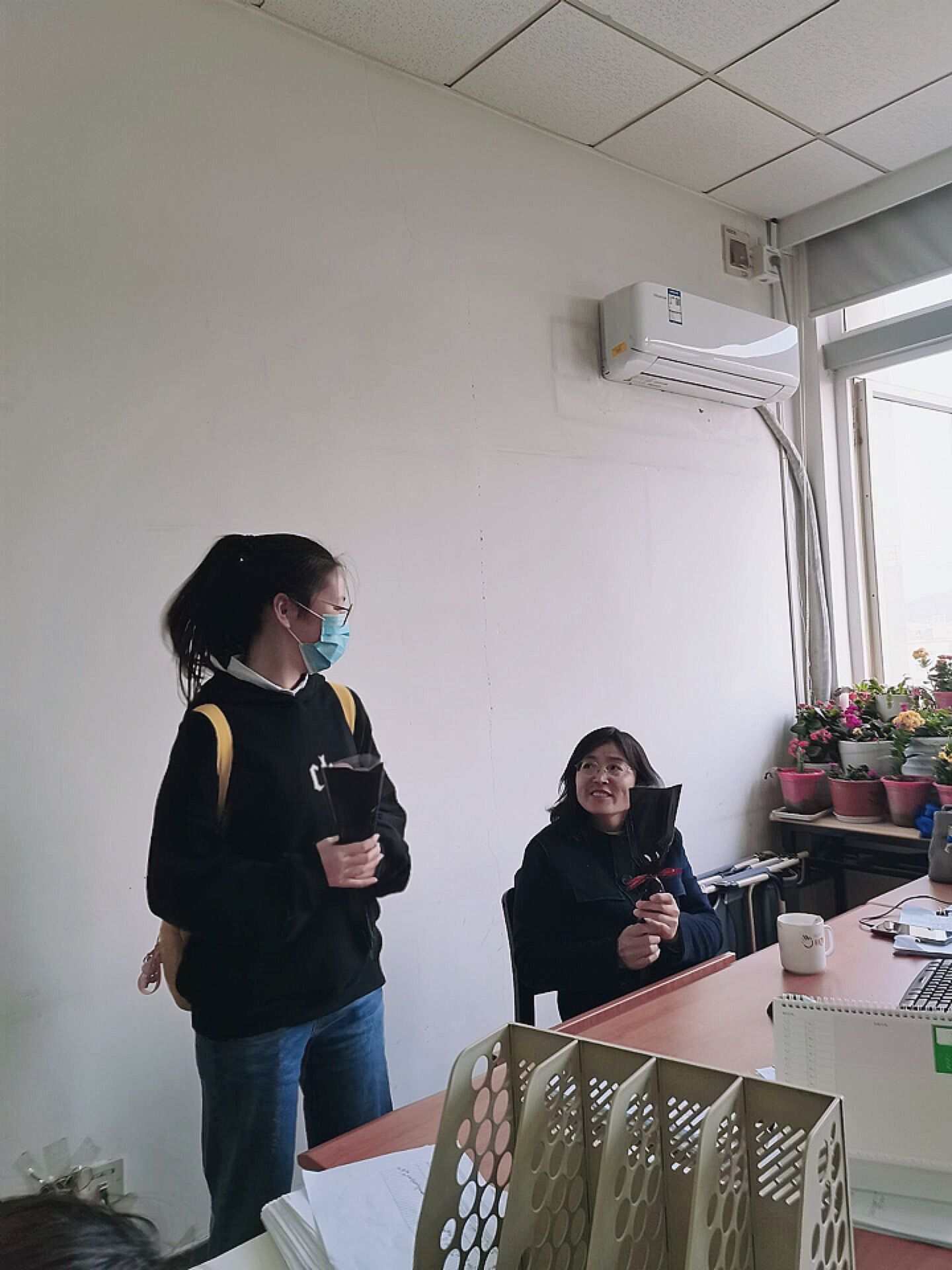 学生自发向学院女教师献上自己亲手装饰的精美鲜花。