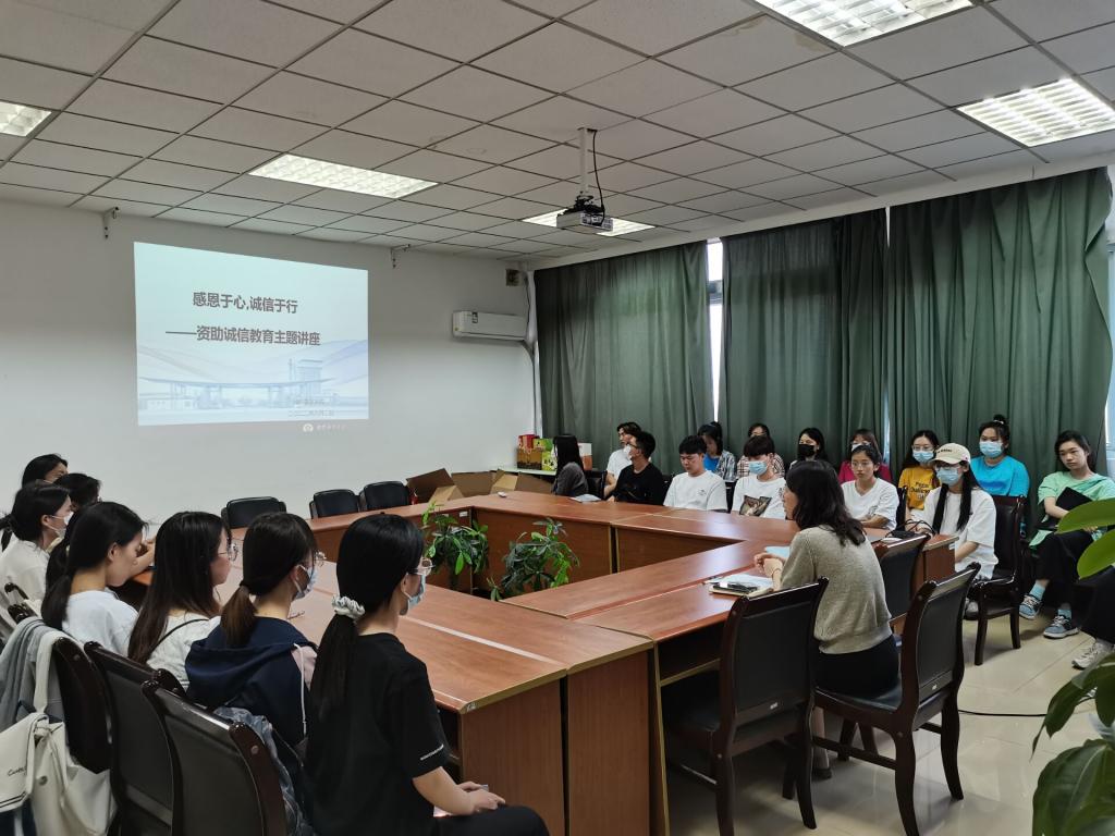 在仙林校区德业楼534会议室举行“感恩于心,诚信于行”资助诚信教育主题讲座,党总支副书记布丹丹主讲,学院全体家庭经济困难学生参加了讲座。