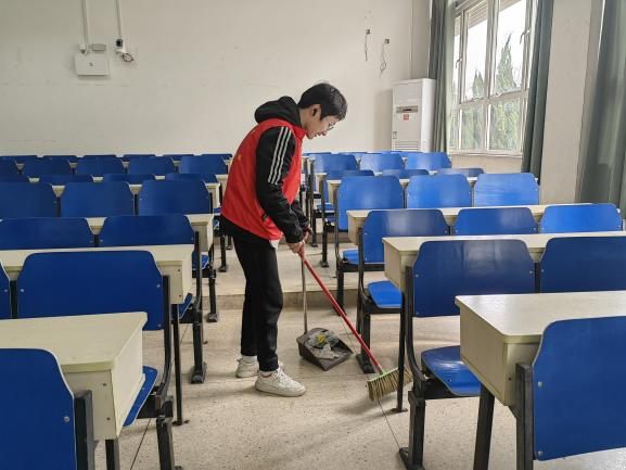 为了给学生提供一个干净、舒适、安静的考场环境,2月28日至3月4日下午,学院团委组织同学分别在教学楼和专业楼内开展考场义务清扫活动。志愿者们有序开展清洁工作,他们个个干劲十足,不怕脏、不怕累,分工合作,对考场进行全面清洁:将桌肚里的垃圾以及地上的纸屑全部清扫干净。将考场的课桌排列整齐,对坏的椅子进行了更换。经过大家的努力,考场卫生环境得到了改善,为大家营造了整洁、卫生的考试环境。