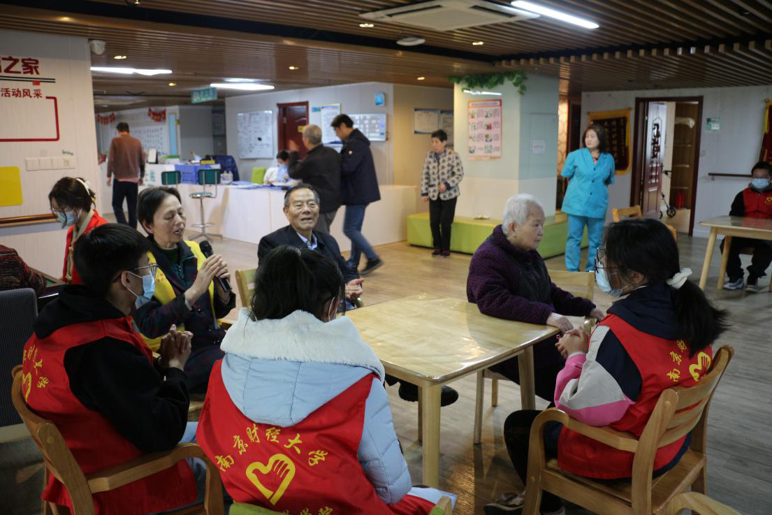 来到护理院后,志愿者们详细询问了老人们的生活情况和健康状况,照顾老人的起居,帮助老人收拾房间,打扫卫生,协助医护人员为老人检查身体。在陪伴老人的过程中,志愿者们聆听着他们诉说着自己的生活琐事以及过往经历,同时也在心里默默记下老人们对青年的殷切期盼与衷心祝福。青年志愿者身上活跃的青春气息与老人们温柔祥和的韵味融合在一起,感染着护理院的每一个人。