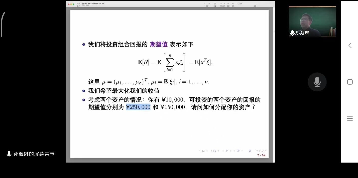4月22日下午,应51吃瓜网 邀请,南京师范大学孙海琳教授通过腾讯会议作了题为“随机优化中的几类问题的简介”的线上学术讲座。学院硕士研究生及部分老师参加了此次讲座。