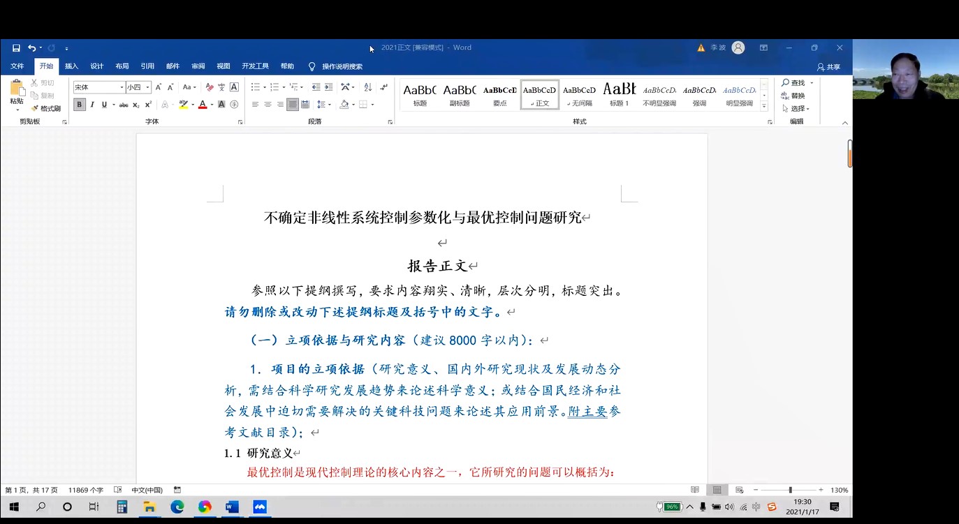曹教授结合最新国家自科项目申报公告的要求,详细解读申报细则以及申报代码的类别。探讨申报课题名称的选取策略,以及正文撰写的基本要素和注意点。着重针对申报提出以下建议:选题上要紧跟国家热点和本学科前沿焦点,明确研究对象或者研究特色,切勿宽而泛;国内外研究现状以及前沿文献的引用简洁、条理清晰、重点突出;研究内容明确具体、可行性分析合理、具有可操作性,创新点突出,合理规避不足,突出自己的亮点工作。评审交流会中,老师逐个对自己的申报书做线上汇报,曹教授仔细听取报告,并对每份申报材料给出一对一建设性意见。