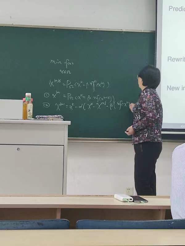 邀请,南京师范大学数学科学学院蔡邢菊教授在仙林校区德经楼202教室作了题为“Improved Prediction Correction Algorithms for Solving Optimization and Stochastic Optimization Problems”的学术讲座。学院相关教师和研究生参加了讲座。