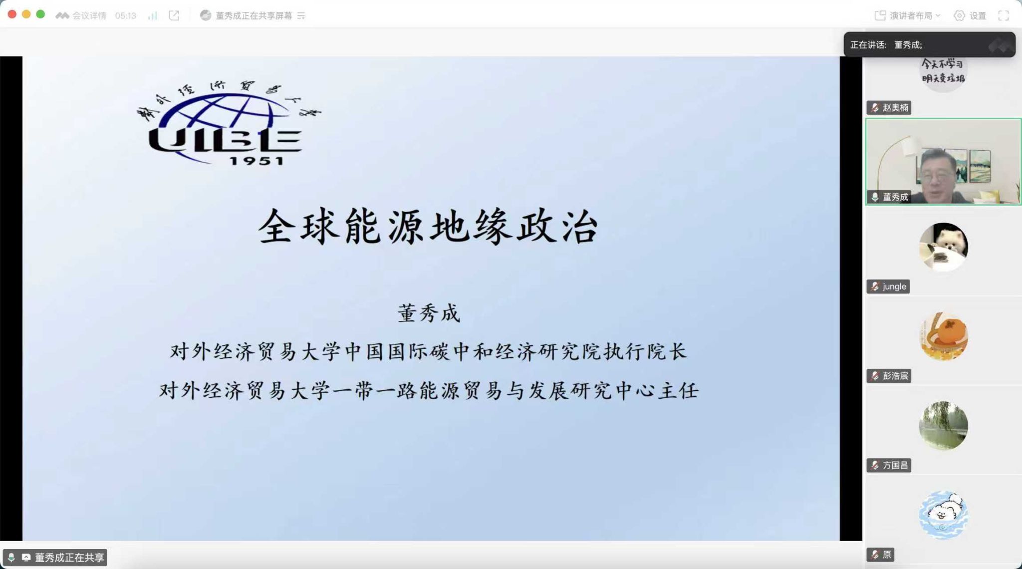 邀请对外经济贸易大学国际经济贸易学院董秀成教授为师生做了题为“全球能源地缘政治”的线上学术报告会,报告由51吃瓜网