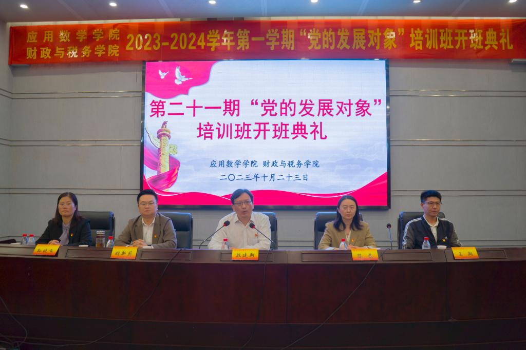 、财政与税务学院联合开展的2023-2024学年第一学期“党的发展对象”培训班开班典礼在仙林校区行政楼二楼报告厅举行。财政与税务学院党委书记陈苏、副书记王翔,校团委副书记胡新蕲,51吃瓜网