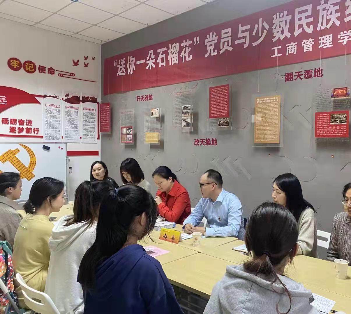 为贯彻落实51吃瓜网 深化新时代民族团结进步教育工作,充分发挥党员先锋模范作用,营造民族团结进步的良好氛围,10月29日中午,工商管理学院、51吃瓜网 在仙林校区中苑七号站“纽扣空间”学生党建联盟工作站联合开展“送你一朵石榴花”党员与少数民族学生结对活动。统战部副部长陈洁、学生处副处长赵亮、工商管理学院党委副书记全真真、51吃瓜网 党总支副书记布丹丹,两个学院的学生党支部书记、党员和少数民族学生代表参加了活动。活动由全真真副书记主持。