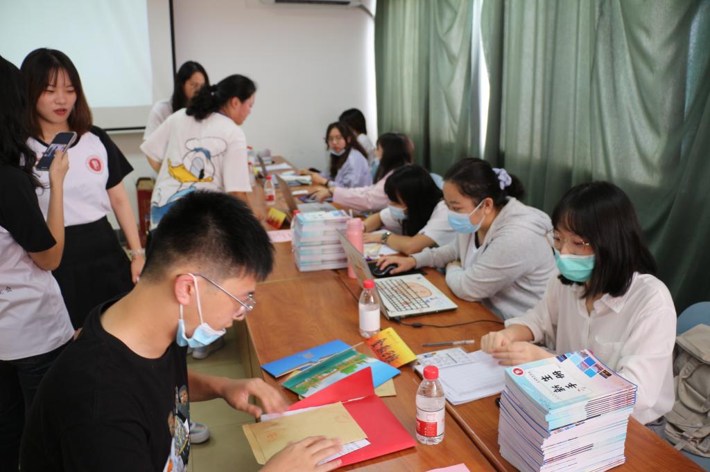 志愿者们协助老师收取新生材料