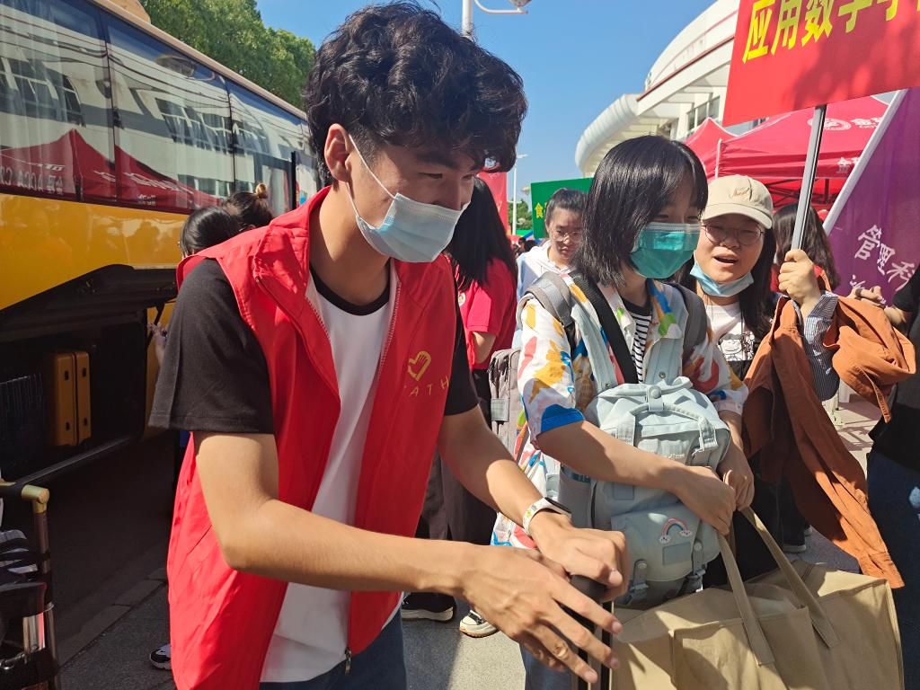 志愿者们帮新生搬运行李