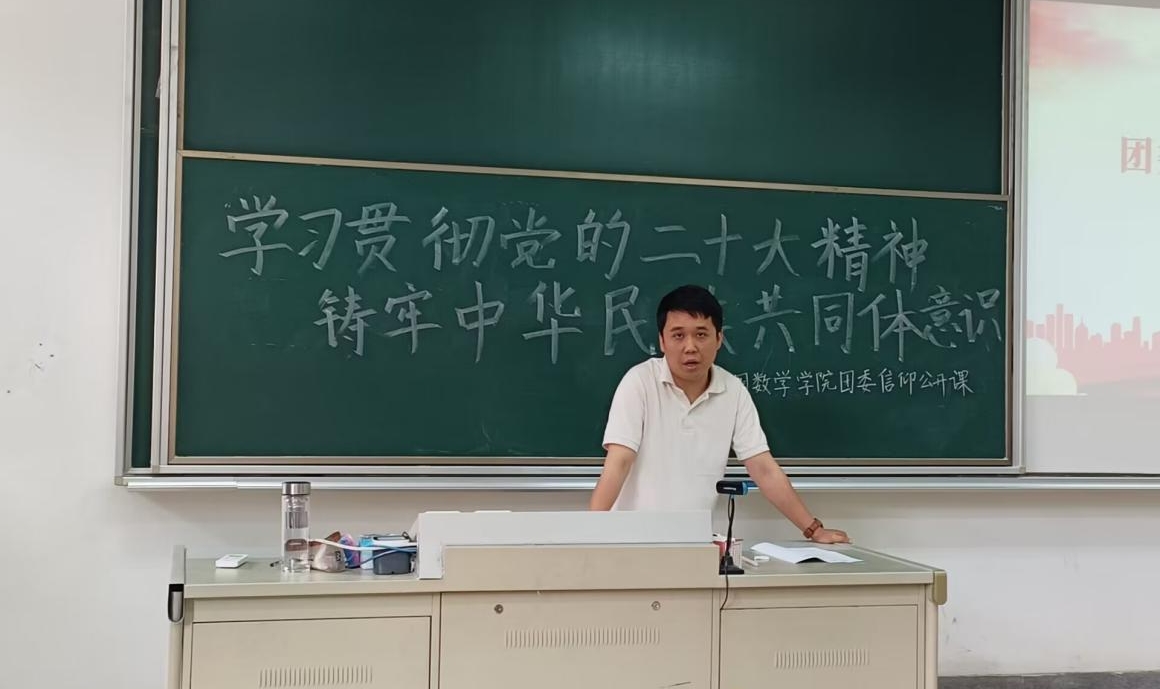 团委在德正楼117教室举办“学习贯彻党的二十大,铸牢中华民族共同体意识”信仰公开课。院团委书记李攻明老师出席并讲话,2021级和2022级团小组及院团委全体成员参加本次活动,活动由院团委心理部干事上官百科、陈泽培同学主持。