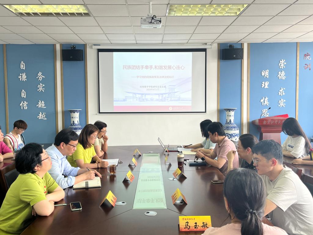 为深入学习贯彻党的二十大精神,落实党的民族政策,进一步铸牢中华民族共同体意识,6月2日中午,应用数学院在仙林校区德业楼508会议室举办“学编中国结,共筑中国梦”红石榴班互动交流活动。学院党总支书记殷建新、教工党员代表、研究生党员代表、全体少数民族学生参加了活动。