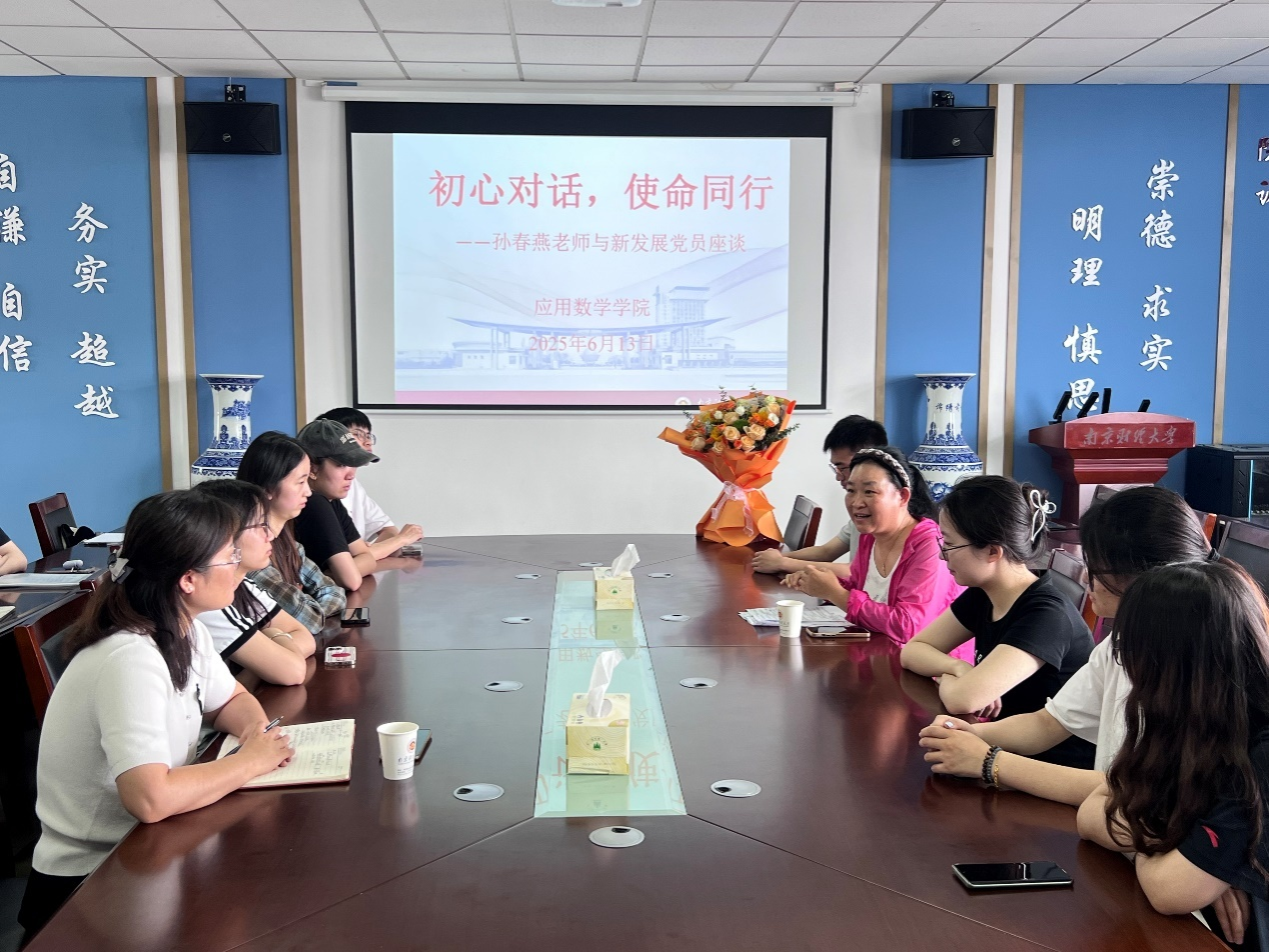 初心对话,使命同行。孙春燕老师和今年新入党的同学齐聚一堂,交流座谈。孙老师深情讲述了自己在党的培养与关怀下成长的经历与感悟,表达了对教育事业的热爱之心和不舍之情。她表示,党员应该在各个方面起到先锋模范作用,在竞争激烈、形势多变的社会环境中,要树立自信心,学会感恩,懂得团队协作,将“化繁为简”、“随机转为确定”的数学思维应用到学习生活与工作中,善于把挫折转化为积极成长的机会,克服多重性挑战,不遗余力地提升自己的综合素质。