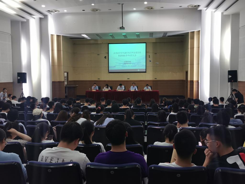 在德济楼报告厅举办2017级考研出国表彰暨2018级考研动员大会。学院党总支书记殷建新、院长王宏勇、党总支副书记布丹丹、副院长宋瑞丽、副院长孙成峰、学工办主任孙晓飞、2017级和2018级辅导员及班主任出席会议。会议由党总支副书记布丹丹主持。