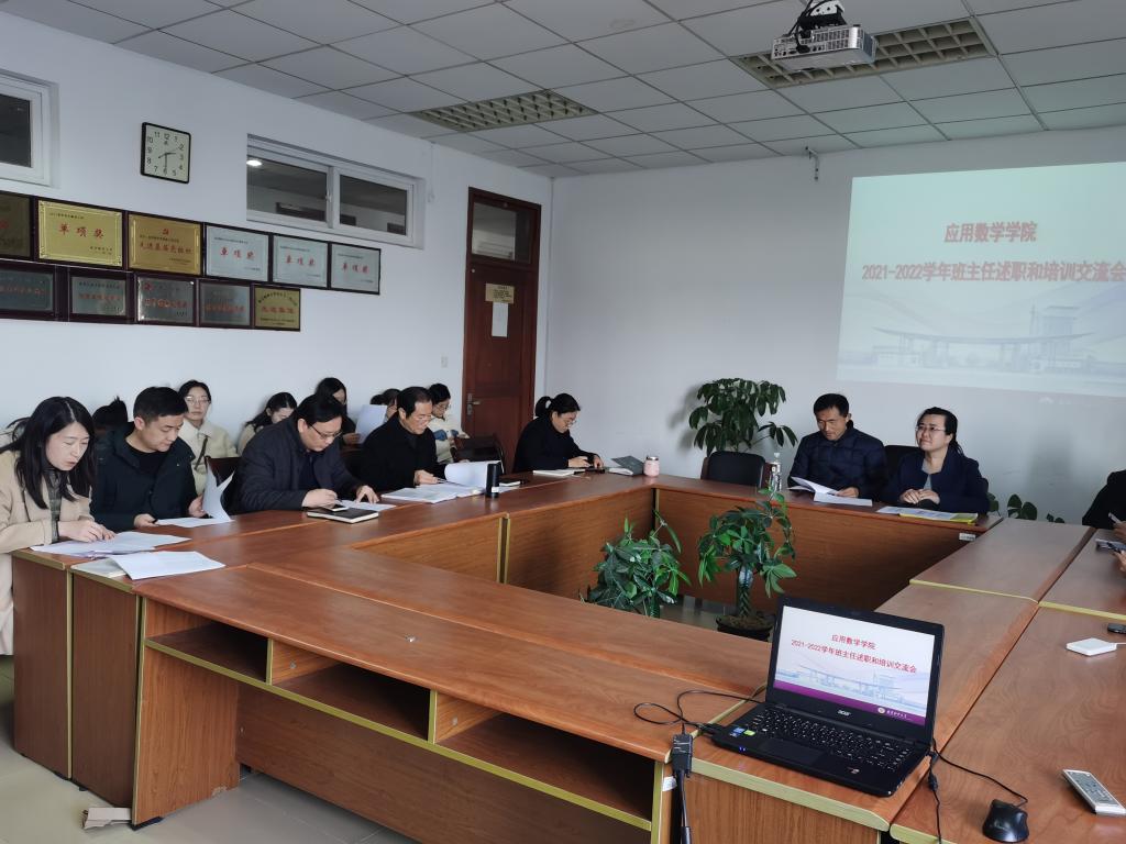 班主任考核实施细则》两份文件,希望班主任老师以此次述职交流会为契机,交流经验,对标找差,共促学生更好成长。接着,各班主任分别就班级概况、思想引领、专业引导、职业规划等方面进行了介绍和总结,同时提出了工作中存在的问题,针对如何更好地和辅导员形成合力帮助学生厘清职业发展等重点问题进行了交流。随后,辅导员老师将前期搜集到的学生对班主任工作的意见和建议进行了反馈,并和班主任老师进行了深入交流。