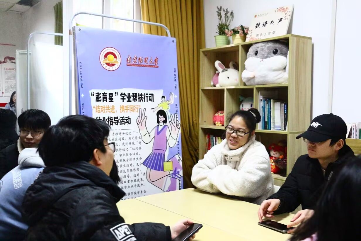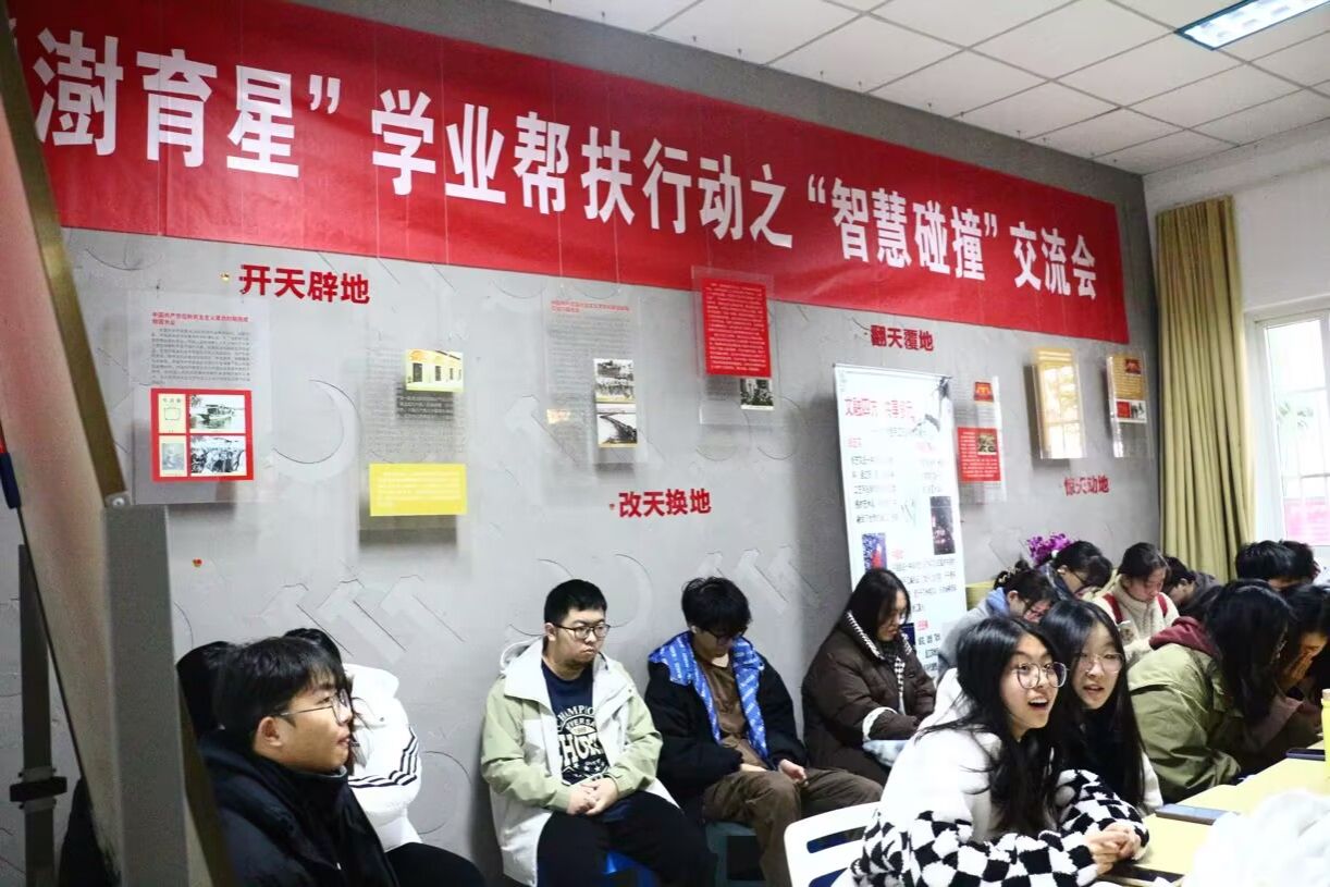 在仙林校区7号站党建联盟工作站开展“澍育星”学业帮扶行动之“智慧碰撞”交流会。本学期“本研互助”项目成员参加活动,对学期学业帮扶行动进行中期总结。