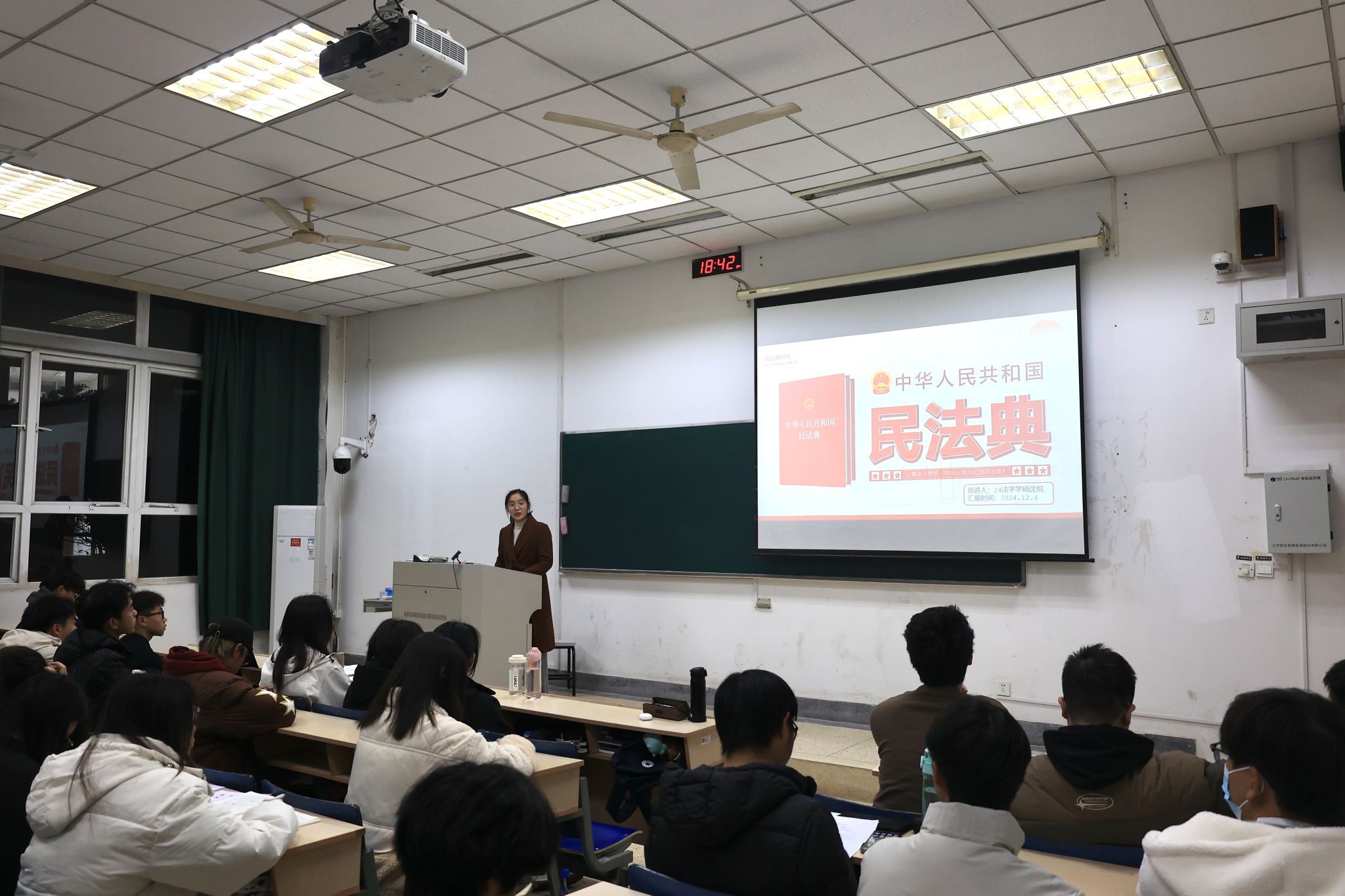 聘请法学院研究生作为学院“法律小顾问”,进班级开展“普法于心 守法于行”普法宣讲活动。三位小顾问围绕习近平法治思想、宪法和民法典,进行了深入浅出的普法宣讲,进一步强化了同学们的法治观念,提升了他们运用法律武器维护自身权益的能力。
