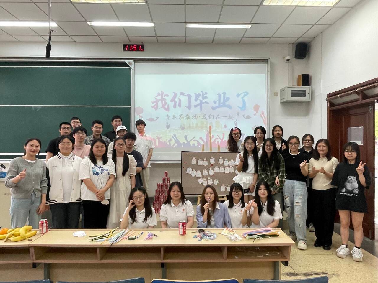 在仙林校区德正楼101教室开展毕业生主题教育活动。副书记孙晓飞、毕业班辅导员温娇为毕业生们送上定制的毕业礼物,并与同学们齐聚一堂,共话成长与未来。在轻松活泼的氛围里面,老师与学生们一起套中“美好未来”,2025届毕业生们纷纷来到留言板前,写下自己对母校、对老师、对同学的不舍与感恩,以及对未来的美好期许。